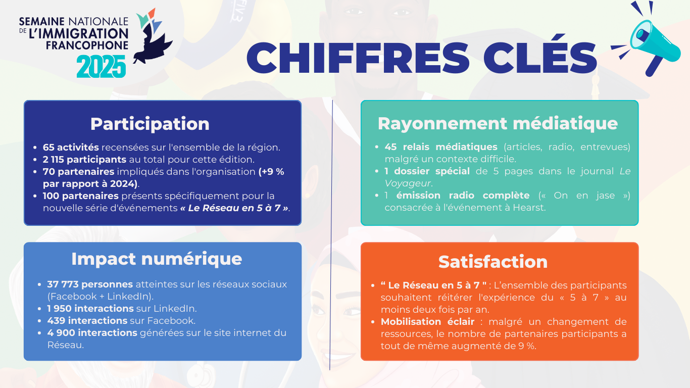 Du 2 au 8 novembre 2025, le Nord a célébré la 13e édition de la Semaine nationale de l’immigration francophone sous le thème inspirant « Merci d’enrichir notre francophonie ». Cette semaine a été l’occasion de souligner l’apport inestimable des nouveaux arrivants à la vitalité de nos communautés nord-ontariennes.